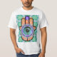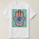 El Hamsa es un amuleto (símbolo de protección). Esta hamsa tiene un símbolo OM en el centro del ojo, dos mandalas en dos puntas y un remolino azul en la punta central que significa energía. Esta hamsa es también un recordatorio de la energía curativa que podemos dirigir desde nuestras manos.
