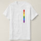 La bandera del Orgullo Arcoiris representa la diversidad de gays y lesbianas en todo el mundo. En la versión original de ocho colores, el rosa representaba la sexualidad, el rojo para la vida, el naranja para la curación, el amarillo para el sol, el verde para la naturaleza, el turquesa para el arte, el añil para la armonía y el violeta para el espíritu. Símbolo masculino doble en la parte posterior.