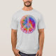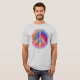 Ate las características teñidas de la camisa del signo de la paz un signo de la paz transparente contra un fondo del teñido anudado.