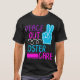 El color es muy bonito al natural, como la foto. El tejido es suave y de buena calidad. Sin defectos en el tintado, ni hilos sueltos o descosidos. Bien la impresión. Los bordes de las letras y el dibujo son nítidos, y el color contrasta muy bien con el de la camiseta.
