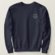 Chaqueta de ancla personalizada Capitán. emblema circular clásico con su nombre y los campos de nombre del barco. Texto blanco.
