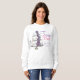 La sudadera presenta un ilustracion de marca original de una torta boda estratificada con rosas helados, y TEAM BRIDE con una fuente bonito rosa y morada. Simplemente personaliza con los nombres de la pareja y la fecha del boda para un regalo de novia único o un favor de boda.