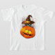 Gracioso y lindo negro gitano con Gorra de brujas mordiendo a su grosero y confuso amigo de calabaza de Halloween. Ilustracion vectorial original Copyright BluedarkArt TheChameleonArt.