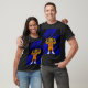 Orgulloso RSD Wildcat mostrando músculos con fondo azul oscuro y negro. Usando jersey con el logo de la escuela.