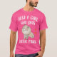 El color es muy bonito al natural, como la foto. El tejido es suave y de buena calidad. Sin defectos en el tintado, ni hilos sueltos o descosidos. Bien la impresión. Los bordes de las letras y el dibujo son nítidos, y el color contrasta muy bien con el de la camiseta.