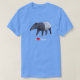 El color es muy bonito al natural, como la foto. El tejido es suave y de buena calidad. Sin defectos en el tintado, ni hilos sueltos o descosidos. Bien la impresión. Los bordes de las letras y el dibujo son nítidos, y el color contrasta muy bien con el de la camiseta.