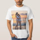 CAMISETA 夕日が美しい夕陽の浜辺で白いハイレグ紐水着の笑顔が可愛い美女