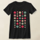 Un diseño compuesto por cinco columnas de siete manchas circulares ordenadas por tamaño y dispuestas en direcciones alternas en un bonito palet de colores.