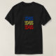 El color es muy bonito al natural, como la foto. El tejido es suave y de buena calidad. Sin defectos en el tintado, ni hilos sueltos o descosidos. Bien la impresión. Los bordes de las letras y el dibujo son nítidos, y el color contrasta muy bien con el de la camiseta.