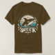 El color es muy bonito al natural, como la foto. El tejido es suave y de buena calidad. Sin defectos en el tintado, ni hilos sueltos o descosidos. Bien la impresión. Los bordes de las letras y el dibujo son nítidos, y el color contrasta muy bien con el de la camiseta.
