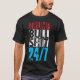 El color es muy bonito al natural, como la foto. El tejido es suave y de buena calidad. Sin defectos en el tintado, ni hilos sueltos o descosidos. Bien la impresión. Los bordes de las letras y el dibujo son nítidos, y el color contrasta muy bien con el de la camiseta.