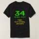 Este tonto y nerd diseño de camisas muestra el mensaje "¡34 AÑOS!", el mensaje de bienvenida de cumpleaños "Feliz cumpleaños número 34", y un nombre editable. Los dígitos de la edad superior y el texto tienen un estilo gráfico geek, pixelado, verde y de 8 bits inspirado en el de los juegos de 8 bits de computadora y los videojuegos clásicos. El mensaje de saludo inferior presenta una apariencia nerd, amarilla y clásica inspirada en la informática digital. Camisetas como este pueden ser usados por los invitados de una fiesta de cumpleaños realizada para celebrar el 34 cumpleaños de alguien que disfruta de videojuegos o computadoras clásicas. [~Z0000455]