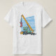 Feliz tercer cumpleaños. Gracioso y encantador diseño de cumpleaños para niños con un lindo dinosaurio sentado en una grúa móvil levantando un número 3. Un juego perfecto para niños y adolescentes.