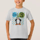 ¡La 3ro camiseta del cumpleaños del pingüino con un pingüino fresco que lleva un gorra del fiesta, los lunares, y los globos azules y verdes que me leen 'son 3"!