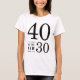 Esta graciosa camiseta de 40 años muestra las palabras "40 es el nuevo 30" en negro, perfecta para una camiseta de color claro. Para agregar texto, haga clic en el botón personalizar. *Tenga en cuenta que la marca de agua Zazzle que aparece en la vista previa del zoom NO aparecerá en el producto impreso final. © Tipo de novela