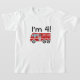 En esta camiseta de cuarto cumpleaños aparece un adorable ilustracion de camión de bomberos rojos.