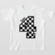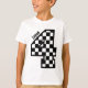 Blanco y negro. Cálida idea de cumpleaños con un gran número con un patrón a cuadros y letras divertidas para un cumpleaños especial de cuatro años. ¡Añade el nombre del pastel cortado! Todo el texto es personalizable.