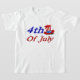 Celebrar el Día de la Independencia de Estados Unidos con esta camiseta que presenta el 4 de julio en texto azul y rojo 3D y el gorra del Tío Sam. Camisa disponible en varios estilos y colores.