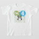 ¡Los asistentes del cumpleaños del tema del parque zoológico amarán nuestra 4ta camiseta del cumpleaños de la cebra que ofrece una cebra que lleva un gorra del fiesta, porciones de lunares verdes y azules, y los globos azules y verdes que me leen "son 4"!