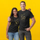 ¡Celebra con estilo esta camiseta de 50 años de moda! Esta camiseta negra contiene un guión dorado para conmemorar el hito especial y se puede personalizar fácilmente con tu propio mensaje especial. Ya sea que estés celebrando a alguien que amas o planeando una fiesta para ti mismo, esta camiseta es una excelente manera de destacar y hacer el evento aún más memorable.
