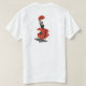 Camisetas de 50 años de temática española, rojas picantes, con un ilustracion de bailarina de flamenco dibujado a mano con colores rojo y negro en el frente con tus detalles fiestas. Gira para ver a un fabuloso bailarín de flamenco en la parte de atrás.