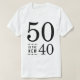Esta divertida camiseta de 50 años muestra las palabras "50 es el nuevo 40" en negro, perfecta para una camiseta de color claro. Para agregar texto, haga clic en el botón personalizar. *Tenga en cuenta que la marca de agua Zazzle que aparece en la vista previa del zoom NO aparecerá en el producto impreso final. © Tipo de novela