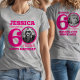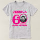Happy 60th Birthday pink text, name and two photos t-shirt. Fun double sided 60th personalized photo t-shirt in bold pink text design. Personalize this birthday shirt with a photograph of the birthday girl in the middle of the number 0 on both the front and the back. Great idea for adding some fun to a milestone sixtieth birthday party celebration. Other matching items and colors options are available. Exclusive design by Sarah Trett for www.mylittleeden.com