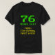 El diseño de esta camisa boba y grosera muestra el mensaje "¡76 AÑOS!", el mensaje de bienvenida de cumpleaños "Feliz cumpleaños número 76", y un nombre editable. Los dígitos de la edad superior y el texto tienen un estilo gráfico nerd, verde, pixelado, de 8 bits inspirado en el de los videojuegos de la década de 1980 y los juegos de computadora de la era de los 80. El mensaje de saludo inferior presenta un estilo geek, amarillo y clásico inspirado en la informática digital. Camisetas como este pueden ser usados por los invitados en una fiesta de cumpleaños que se lleva a cabo para celebrar el cumpleaños setenta y seis de alguien a quien realmente le gustan los videojuegos vintage o las computadoras retro. [~Z0000455]