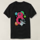 El color es muy bonito al natural, como la foto. El tejido es suave y de buena calidad. Sin defectos en el tintado, ni hilos sueltos o descosidos. Bien la impresión. Los bordes de las letras y el dibujo son nítidos, y el color contrasta muy bien con el de la camiseta.