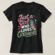 Esta prenda negra muestra el texto "Sólo un Chica que ama a las cucarachas" en un tipo de letra alegre y colorida, acompañado por una cucaracha personalizado que usa gafas de sol y da un pulgar hacia arriba. Pequeños corazones y estrellas decoran el diseño. Es un diseño peculiar y humorístico para alguien con una inusual apreciación por los insectos.