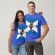 El color es muy bonito al natural, como la foto. El tejido es suave y de buena calidad. Sin defectos en el tintado, ni hilos sueltos o descosidos. Bien la impresión. Los bordes de las letras y el dibujo son nítidos, y el color contrasta muy bien con el de la camiseta.