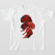 The artwork appears to be a digital illustration, likely created with digital painting software. The style is detailed, with emphasis on the intricate textures and flowing lines. The color palette is dominated by red, with the black background creating contrast, and the white/light blue highlights adding visual interest. The execution showcases a high degree of technical skill, particularly in the rendering of light and shadow, and the smooth transitions between colors. The style is likely influenced by photorealism and digital painting techniques.