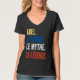 Camiseta con cuello en V de mujer, Negro, XL de adulto