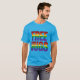 El color es muy bonito al natural, como la foto. El tejido es suave y de buena calidad. Sin defectos en el tintado, ni hilos sueltos o descosidos. Bien la impresión. Los bordes de las letras y el dibujo son nítidos, y el color contrasta muy bien con el de la camiseta.