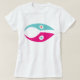This vibrant image features an abstract and minimalist design of two fish shapes arranged symmetrically. The top fish is colored in a soft blue with a contrasting red eye while the bottom fish is a bright pink with a light blue eye. The design is modern and clean set against a solid black background perfect for logos graphic elements or any creative project needing a touch of simple elegance and bold color contrast. This creates a visually appealing and memorable image suitable for diverse applications from branding to art prints