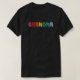 El color es muy bonito al natural, como la foto. El tejido es suave y de buena calidad. Sin defectos en el tintado, ni hilos sueltos o descosidos. Bien la impresión. Los bordes de las letras y el dibujo son nítidos, y el color contrasta muy bien con el de la camiseta.