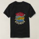 El color es muy bonito al natural, como la foto. El tejido es suave y de buena calidad. Sin defectos en el tintado, ni hilos sueltos o descosidos. Bien la impresión. Los bordes de las letras y el dibujo son nítidos, y el color contrasta muy bien con el de la camiseta.