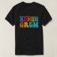 El color es muy bonito al natural, como la foto. El tejido es suave y de buena calidad. Sin defectos en el tintado, ni hilos sueltos o descosidos. Bien la impresión. Los bordes de las letras y el dibujo son nítidos, y el color contrasta muy bien con el de la camiseta.