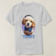 Camiseta Adorable Cachorro Fluffy con Azulejos de Bow Azul