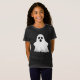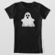 Esta es una adorable camiseta de Halloween que se puede usar como disfraz simple para Halloween. La imagen muestra un fantasma blanco adorable sobre un fondo negro.