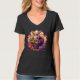 Camiseta con cuello en V de mujer, Negro, XL de adulto