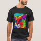 El color es muy bonito al natural, como la foto. El tejido es suave y de buena calidad. Sin defectos en el tintado, ni hilos sueltos o descosidos. Bien la impresión. Los bordes de las letras y el dibujo son nítidos, y el color contrasta muy bien con el de la camiseta.