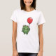 This heartwarming design features a delightfully round cactus character determined to enjoy a floating red balloon despite its prickly nature. The illustration showcases a clever safety solution, with small corks carefully placed on the cactus's sharpest upper spines to prevent any popping mishaps. With a beaming kawaii smile, blushing cheeks, and a tiny arm clutching the balloon string, this artwork perfectly captures a moment of innocent problem-solving and pure joy. The vibrant contrast between the green succulent and the glossy red balloon makes for a visually striking and humorous cartoon composition.