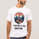 A circular compass sits at the centre of the t-shirt. Instead of traditional compass markings, each direction transforms into a hiking and camping element, with Adventure Is the Direction printed under the design.