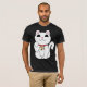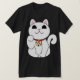 El maneki-neko o el gato el tentar es un símbolo de la buena suerte en Japón. Los gatos, encontrados en una variedad de colores y de estilos, se están incorporando generalmente con una pata aumentada en un gesto de tentar. El Maneki-neko es una vista común en Japón, colocado en las entradas de tiendas y de restaurantes, con la esperanza de que ella traiga buena suerte y prosperidad bajo la forma de clientes y negocio adicional. El su traje del gato se aumenta el color, y que de sus patas, incluso la altura en la cual se aumenta su pata, toda tiene significación. ¡* la pata derecha para arriba - trae buena suerte con el dinero * dejó la pata para arriba - trae muchos clientes/visitantes * con la campana del oro - trae buena fortuna * con la bufanda roja - dibuja la atención * con la moneda de oro - mantiene riqueza así que esto debe ser una camiseta muy afortunada!