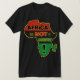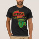 " África no es un país!" texto en un fondo rojo, negro y verde del continente africano con una frontera del oro. Etiqueta de la marca de "HGX" en el revés superior debajo del cuello.