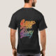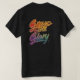El color es muy bonito al natural, como la foto. El tejido es suave y de buena calidad. Sin defectos en el tintado, ni hilos sueltos o descosidos. Bien la impresión. Los bordes de las letras y el dibujo son nítidos, y el color contrasta muy bien con el de la camiseta.