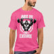 El color es muy bonito al natural, como la foto. El tejido es suave y de buena calidad. Sin defectos en el tintado, ni hilos sueltos o descosidos. Bien la impresión. Los bordes de las letras y el dibujo son nítidos, y el color contrasta muy bien con el de la camiseta.