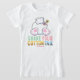 Shake Your Cotton Tail Cute Easter Bunny Add Name Personalized T-shirts incluye un lindo conejito de Pascua y flores de primavera con el texto "Shake your algodón tail" en una tipografía colorida. Personalizado con su nombre editando el texto en el cuadro de texto proporcionado. Diseñado por ©Evco Holidays www.zazzle.com/store/evcoholidays