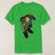 El color es muy bonito al natural, como la foto. El tejido es suave y de buena calidad. Sin defectos en el tintado, ni hilos sueltos o descosidos. Bien la impresión. Los bordes de las letras y el dibujo son nítidos, y el color contrasta muy bien con el de la camiseta.